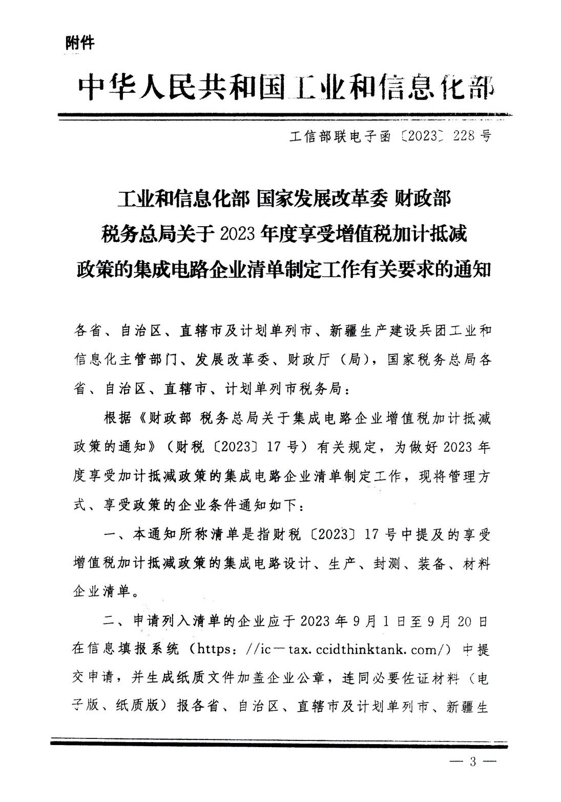 關于2023年度享受增值稅加計抵減政策的集成電路企業(yè)清單制定工作有關要求的通知